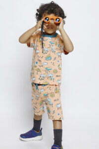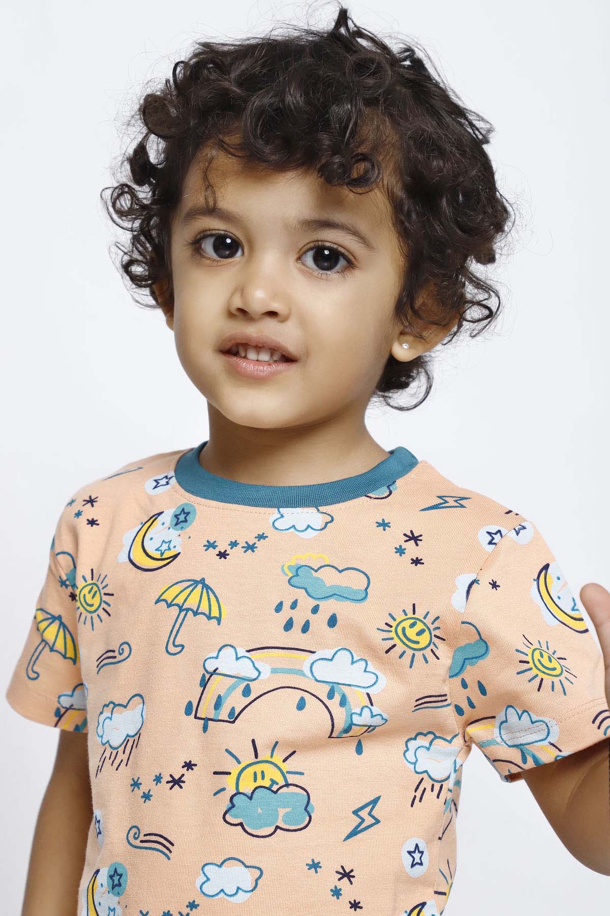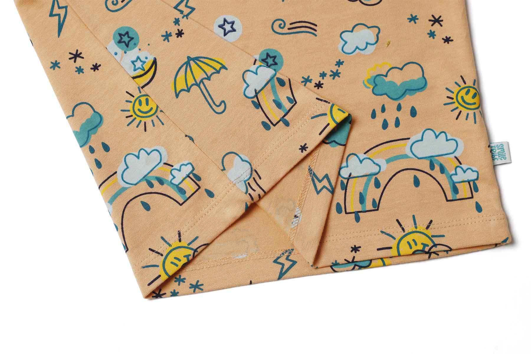 Out in the sun or caught in a shower, this weather-themed set is perfect for kids who love to run around in whatever the weather brings. Made of 100% soft cotton, this set is high on comfort and softness, perfect for play or loungewear. The colourful rainbows, clouds, and sunshine will brighten any day, while the comfortable fit will keep kids happy all day long.